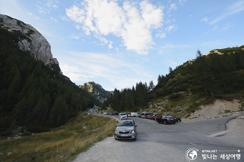 갑자기 도로 양 옆으로 멈춰서는 앞 차들을 따라 차를 세웠다. 여기는 브르시크, 1,611m의 높이의 도로 정상으로 슬로베니아 최고봉인 트리글라브 Triglavski를 포함한 율리안 알프스의 풍경을 가장 잘 볼 수 있는 지점이란다. 크란스카 고라에서부터 자전거나 오토바이 혹은 도보로 패스를 오른 이들은 여기서 절정을 맞이하고, 백패커들은 여기서부터 Prisank (2,547m), Mala Mojstrovka (2,332m), Plaja (2,453m) 등의 고봉으로 가는 트래킹을 시작한다. 물론 우리처럼 기념사진만 찍고 하산하는 이들도 많다. ㅋㅋ