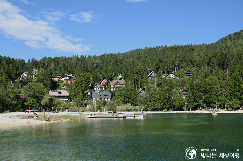 야스나 호수 Lake Jasna는 율리안 알프스에서 녹아내린 빙하수가 고여 만들어진 곳이다. 수심이 깊지 않고 어디서나 바닥이 훤히 내려다 보일 정도로 말고 깨끗해 (그리고 엄청 차가워서) 아이들의 물놀이 장소로 인기가 높았다. 푸른 숲이 그대로 반영되어 초록초록한 수면은 바라보고 있는 것만으로 눈이 맑아지는 기분이었다.