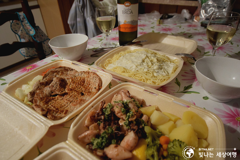 친절한 주인 내외 덕분에 무사히 체크인을 하고 마을에 하나 뿐이라는 식당에서 저녁식사를 구입해왔다. 선택권이 많지 않아 큰 기대를 하진 않았는데 양도 넉넉하고 맛도 훌륭해 꽤나 만족스러웠다. 유명 관광지 특유의 화려함과 세련됨은 없어도 왠지 모르게 정감가는 시골마을이 아무래도 우리 취향인건가. ㅋ