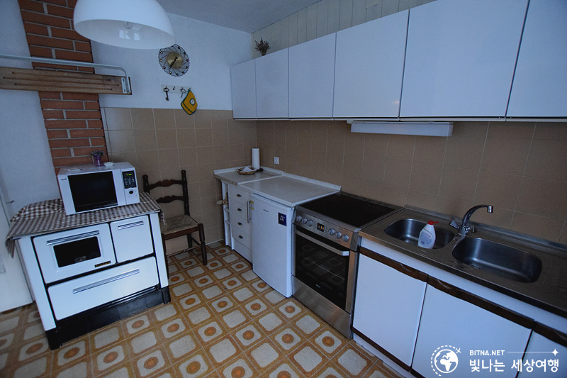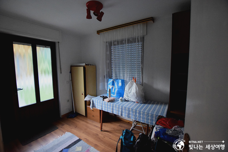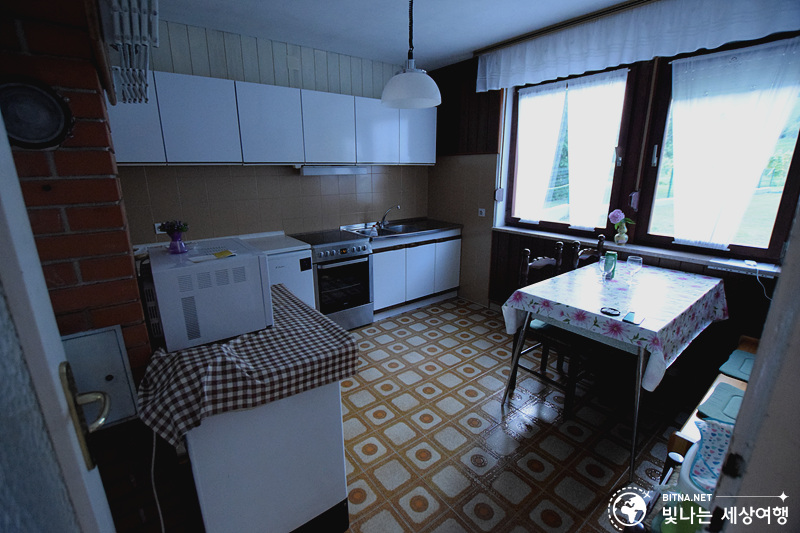 두 층으로 나뉘어진 건물 중 우리가 예약한 아파트는 1층. 입구부터 복도가 이어지는 것이 꽤나 큰 면적이 예상되었다. 주방과 욕실을 포함한 3개의 침실로 이루어진 꽤나 큰 아파트였는데 산골이라 그런지 별도의 냉방장치 없이도 충분히 시원했다. 우리가 여행한 시기는 8월 말이었고, 밤에는 오히려 추위를 걱정할 정도였다.
