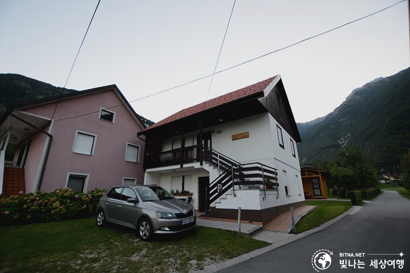슬로베니아의 자랑 율리안 알프스를 관통하는 브르시크 Vrsic Pass 패스를 통과하고 나니 생각보다 더 시간이 늦어졌다. 많은 이들이 브르시크 패스가 끝나는 지점인 보베츠 Bovec에서 숙박을 하는데, 우리가 예약한 숙소는 보베츠보다 조금 더 남쪽에 있는 마을(Žaga)이었다. 뭐 멀어봐야 강변따라 달려서 몇 분 되지 않는 거리지만;