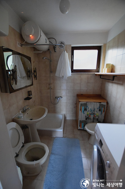 욕실은 꽤 넓은 편. 욕조가 없는 것이 좀 아쉬웠지만 샤워부스 외에 공간이 충분히 넓고 곳곳에 선반이 많아서 아기 물건을 꺼내놓고 씻기는 것에 큰 어려움이 없었다. 온수기 용량 때문에 샤워 중 온수가 끊기진 않을까 걱정했지만 두 사람이 연속으로 씻어도 온수는 충분히 나오더라. 혹시나 싶어서 마지막에는 시간차를 두고 씻었다. 딱 하루 머물었기 때문에 세탁기는 써보지 못했지만 세제나 건조대 등 필요한 건 다 준비되어 있었다.